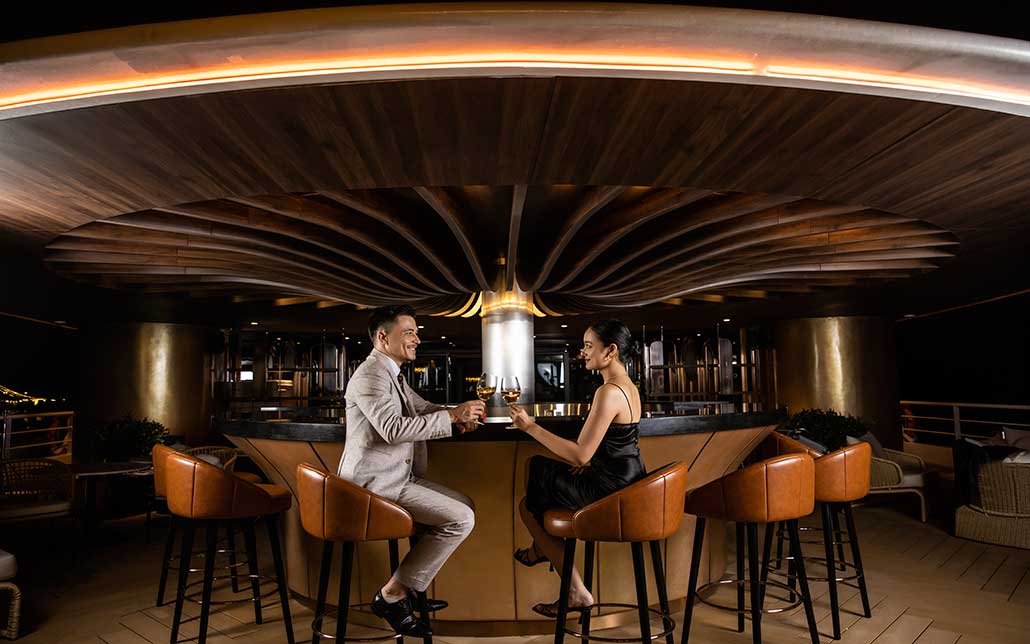 Quầy bar sang trọng trên du thuyền Sea Stars Hạ Long, không gian thư giãn đẳng cấp giữa vịnh